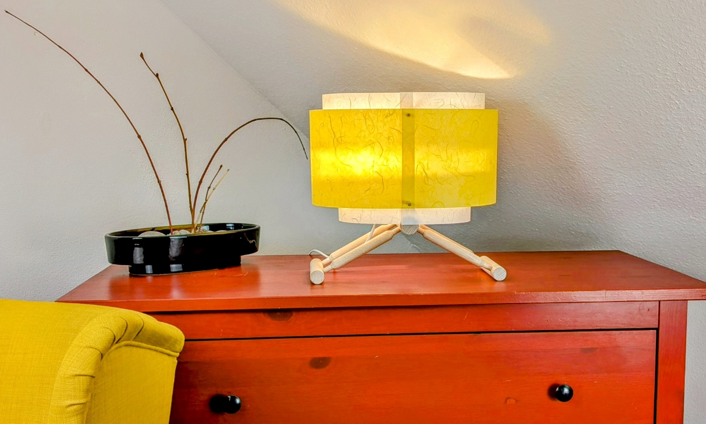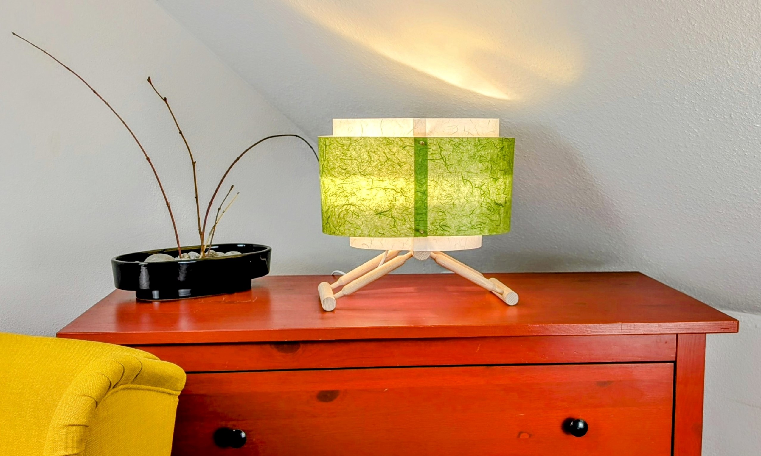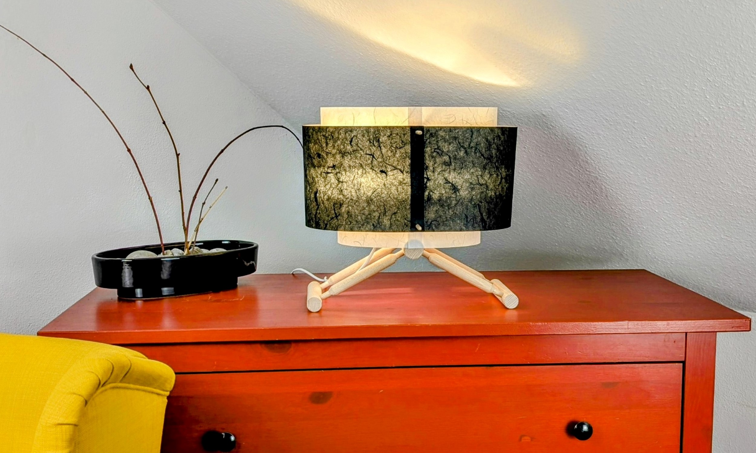 Dieser Schirm fügt sich flexibel in deinen Wohnstil ein. Die Papierpaneele lassen sich unterschiedlich gestalten und sorgen so für ein ganz persönliches Design. Ob dezent oder ausdrucksstark – gestalte das Licht ganz nach deinem Geschmack.